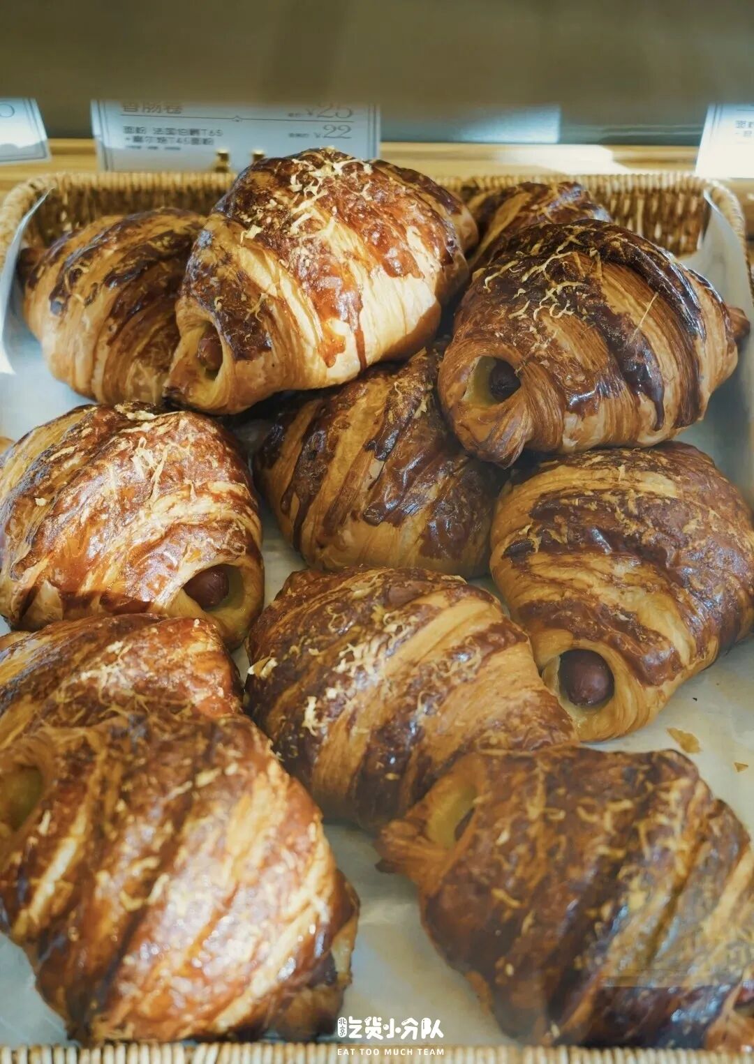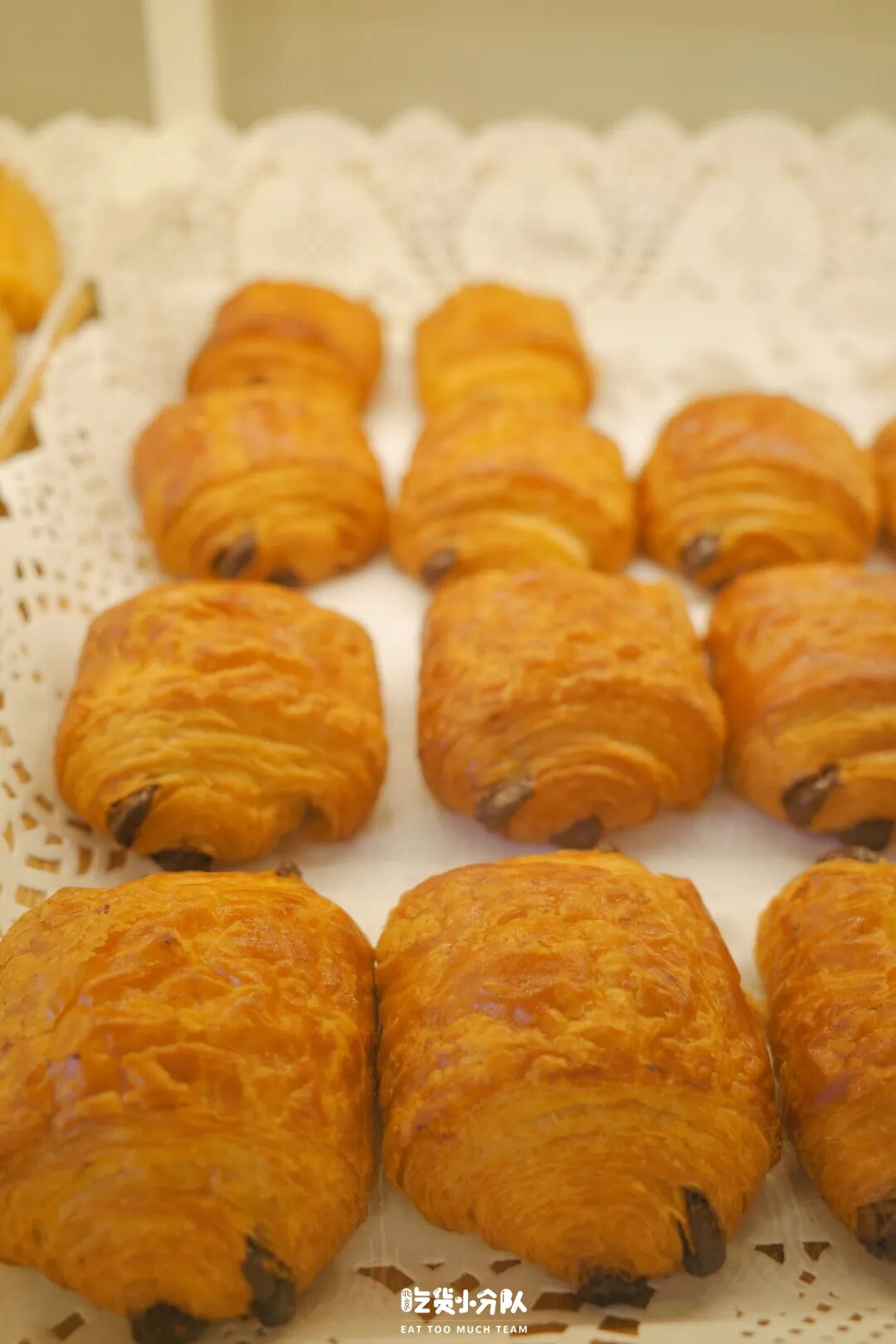 他家比较有特色的是,会有迷你版面包,比如迷你巧克力面包卷、迷你红豆卷、迷你可颂等,吃着会减少一些负担。也有正常规格的欧包和起酥面包等。店内靠窗有座位,但打包带走的人居多。