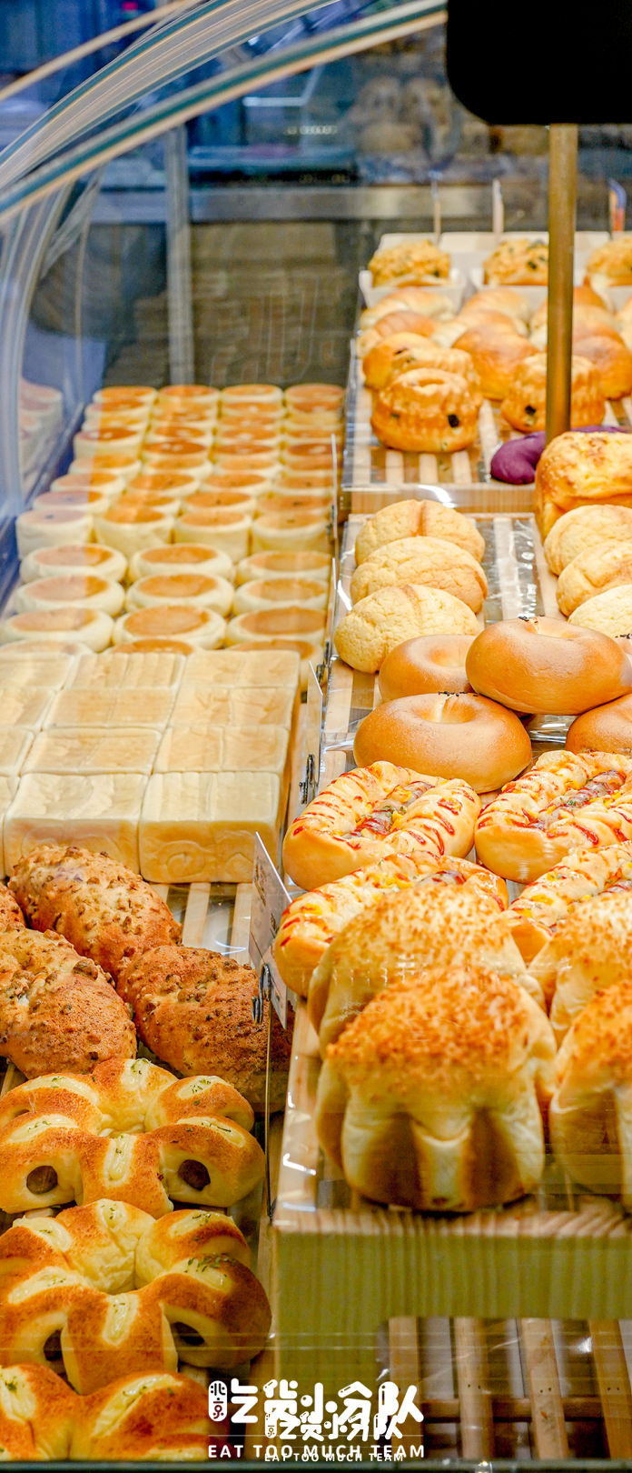 青岛开来的面包店,主打少糖油的面包。面包备货也蛮充足,摆放也很整齐,烟花缭乱让人很有购买欲hh。