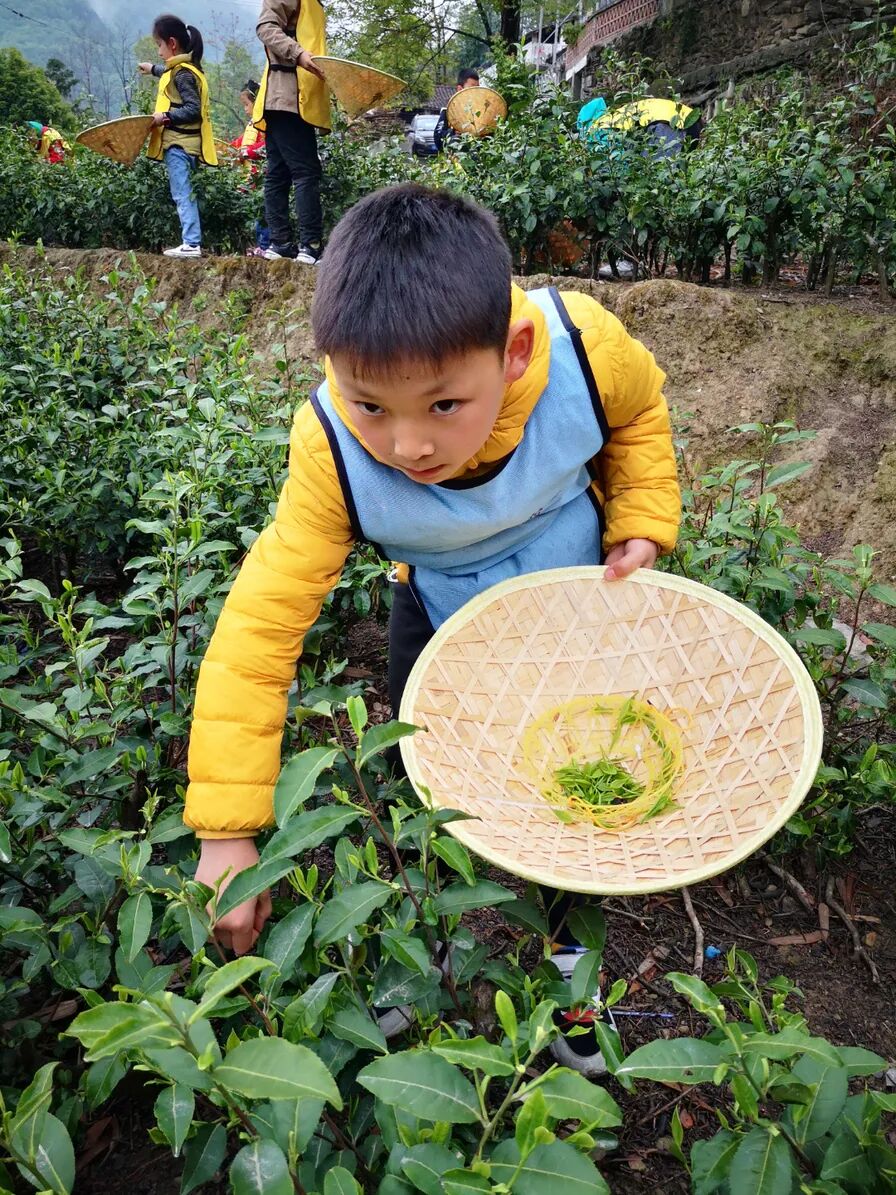走进茶园,了解茶叶生长环境、树龄,形态,结构等,现场教孩子们识茶及初级采茶技巧,提上竹篮,戴上斗笠,精选一叶一芽,绿绿的茶芽,加深了孩子们对传统文化的认识。