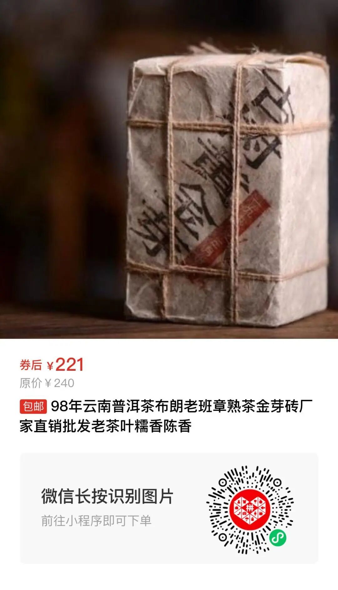 98年云南普洱茶布朗老班章熟茶金芽砖厂家直销批发老茶叶糯香陈香