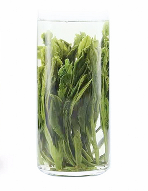 投入杯中,注入热水,茶汤很快就会变成明亮清澈的嫩绿色,香气也散发出来,清香持久。叶片在水中舒展开来,整片的叶子悬浮在水中,没有芽,没有梗,干干净净。