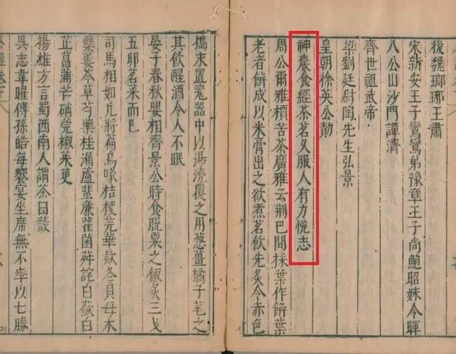 唐代陈藏器《本草拾遗》称茶为“万病之药”。《神农食经》:“茶茗久服,令人有力悦志。”说的是长时间饮茶茗,可使人有气力,心志舒畅。
