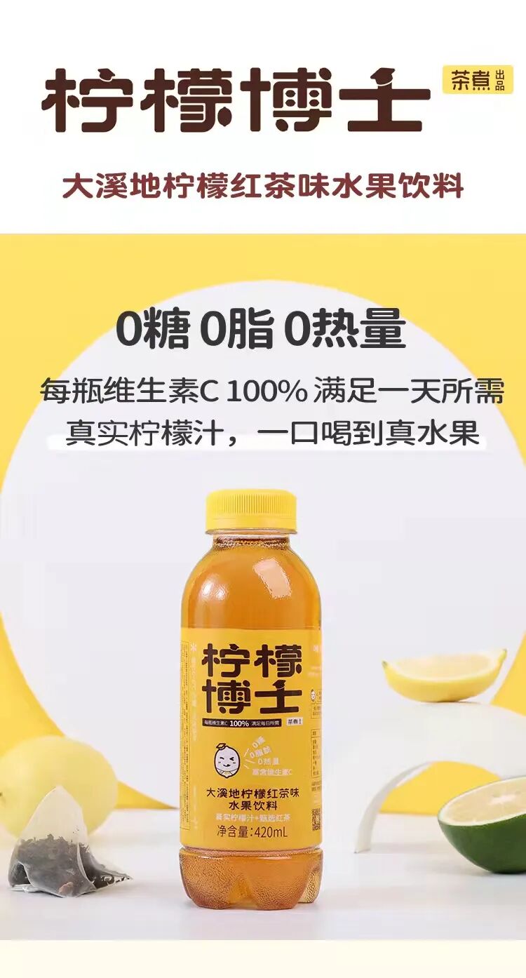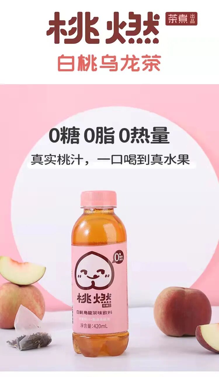 产品卖点:茶煮公司2015年成立于北京,并于天津设立分公司,是国际上专注于健康奶茶、水果茶研发生产的饮料公司。旗下桃燃牌白桃乌龙茶、柠檬博士牌柠檬红茶受到行业多项好评及奖项,并获抖音2021年中国白桃乌龙茶爆款榜Top5奖项。产品0糖0脂0卡,真桃汁+真茶,富含人体一天所需维生素C,更符合年轻消费者审美的包装。