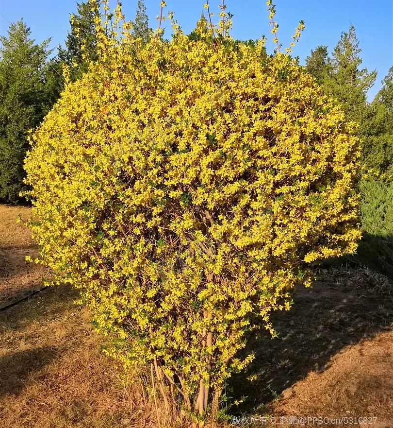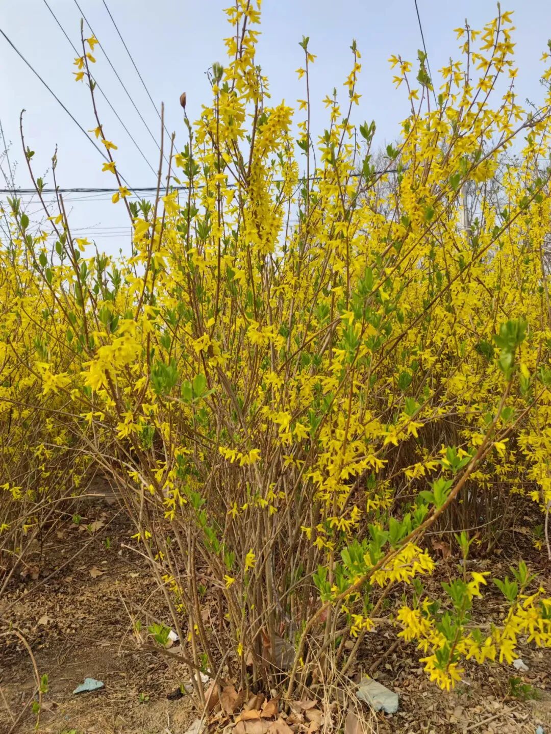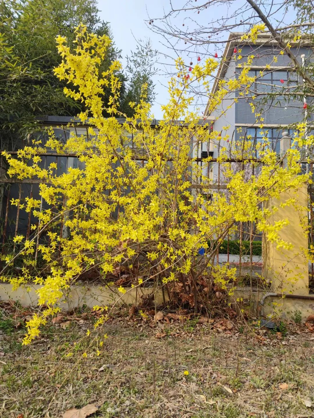 连翘的枝干聚集生长,枝条由中心向外扩,犹如一把撑开的小伞。金钟花的枝干笔直,好似要直冲云霄。