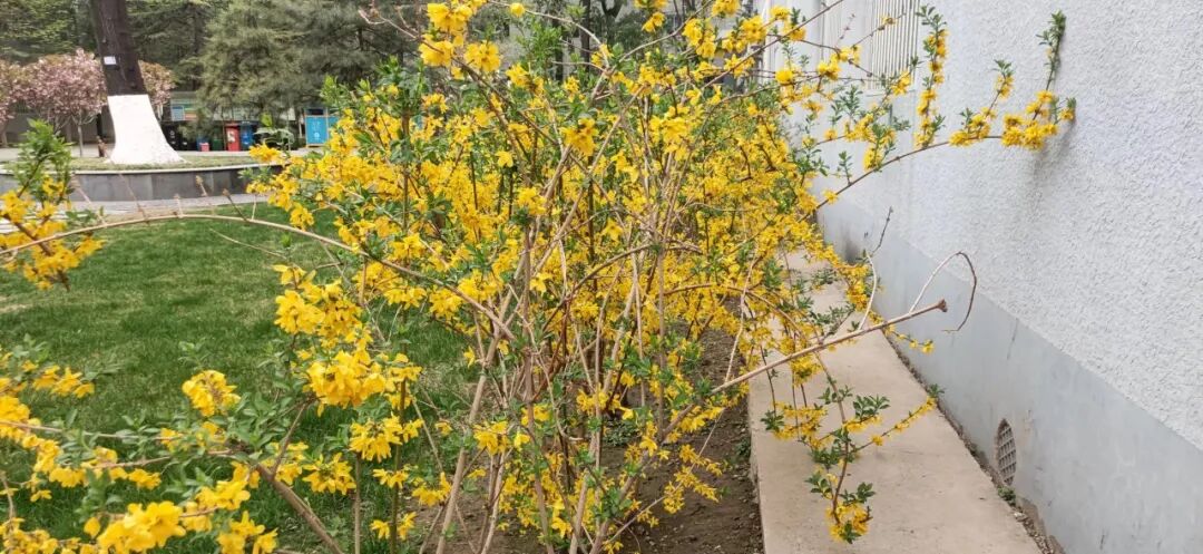 现在正是连翘的花期,大家可以到户外去观察哦!