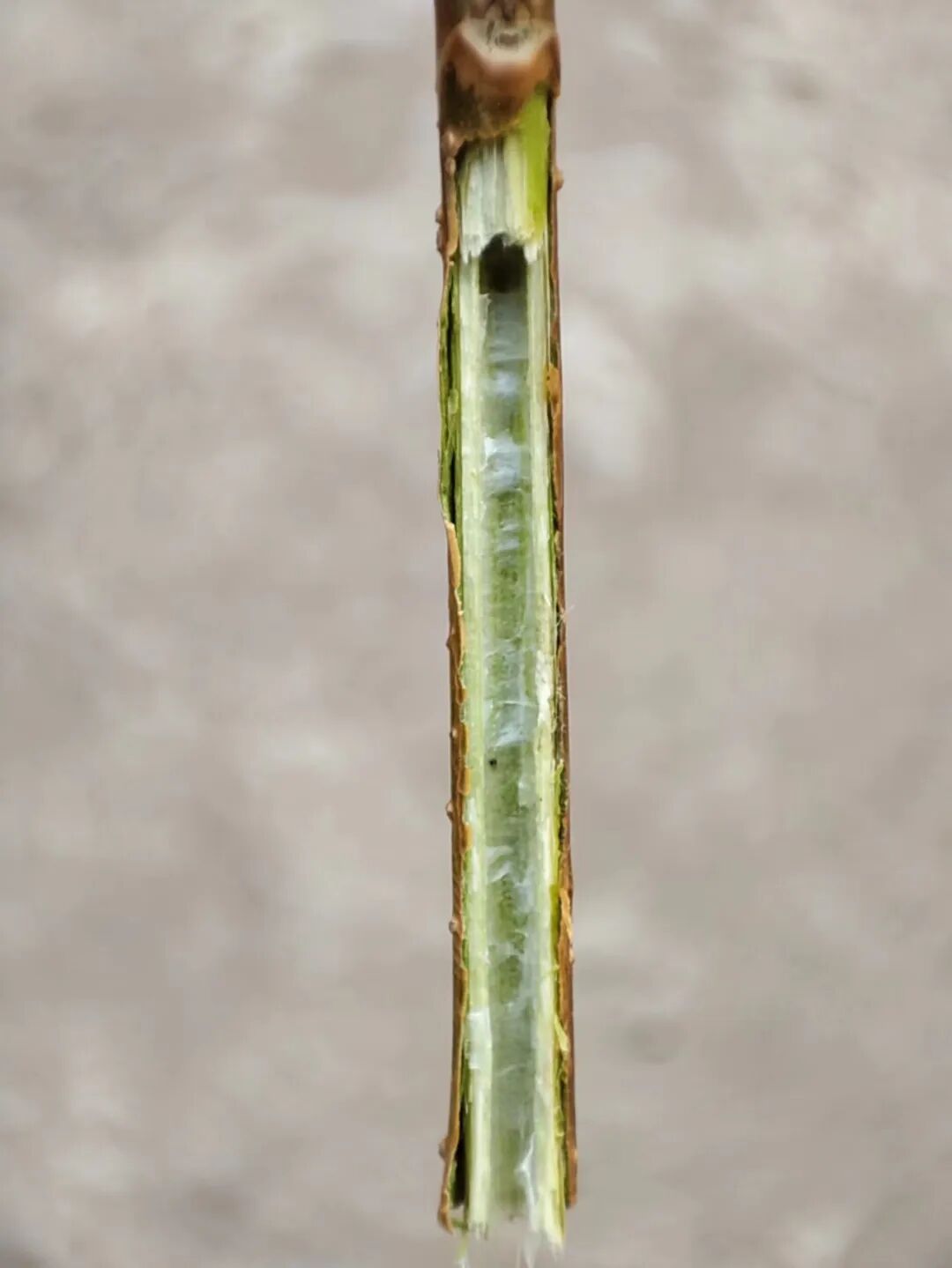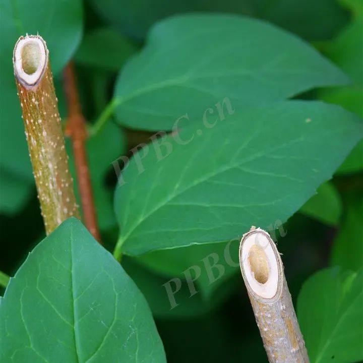 枝开展或下垂,棕色、棕褐色或淡黄褐色,小枝土黄色或灰褐色,略呈四棱形,疏生皮孔,节间中空,节部具实心髓。