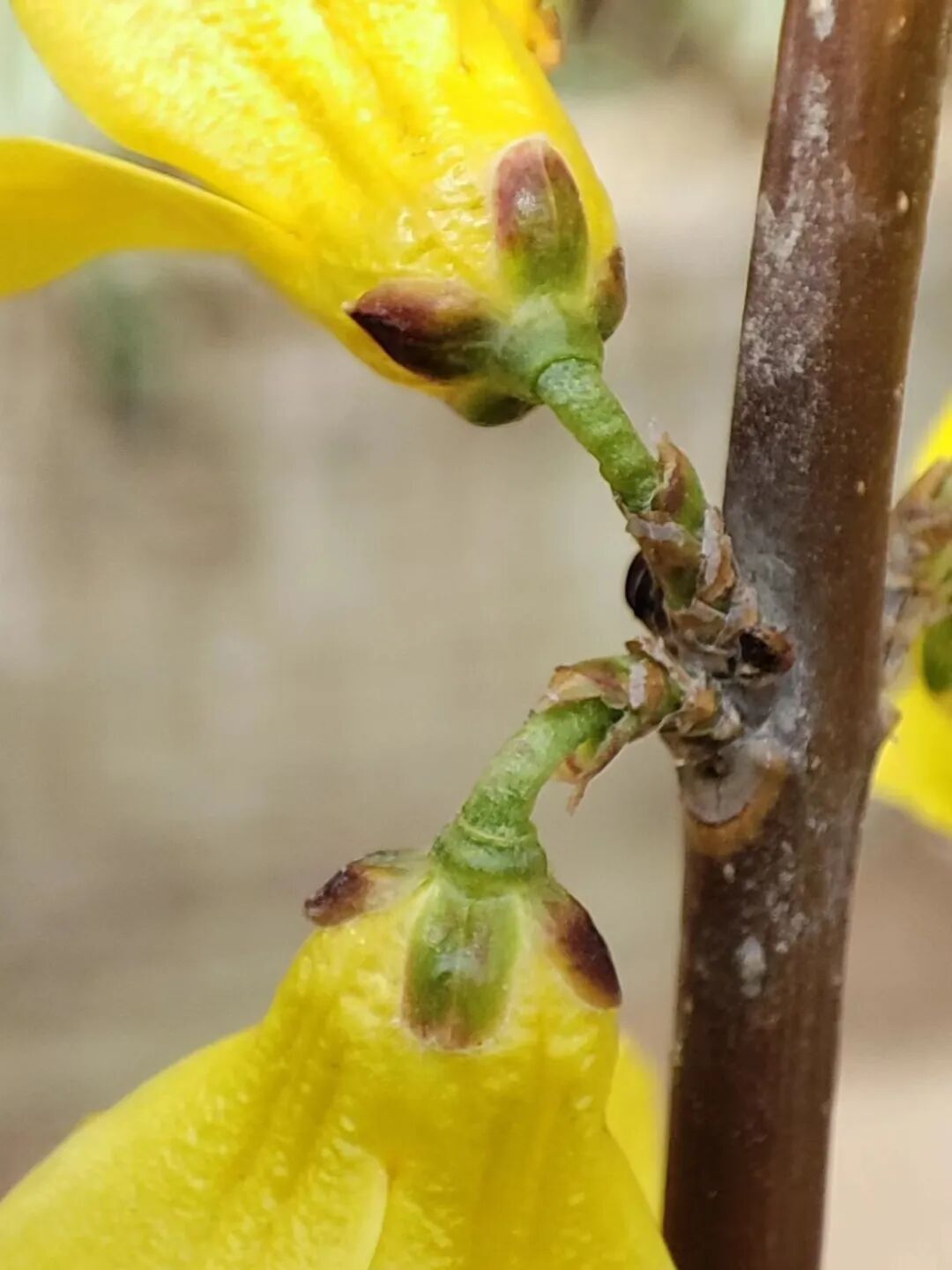 图中两枝,哪个是连翘花,哪个是金钟花?