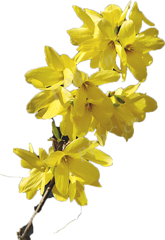 连翘花在3、4月开放,花通常单生或2至数朵着生于叶腋,先于叶开放;花萼绿色,裂片长圆形或长圆状椭圆形,先端钝或锐尖,边缘具柔毛,与花冠管近等长;花冠黄色,4瓣,裂片倒卵状长圆形或长圆形。