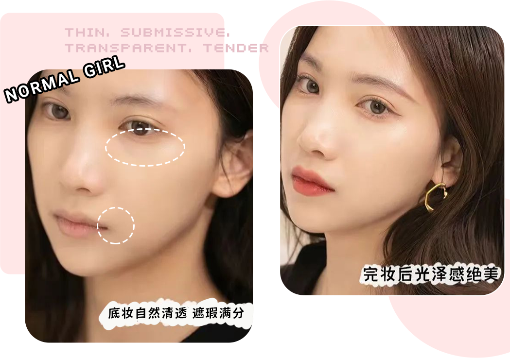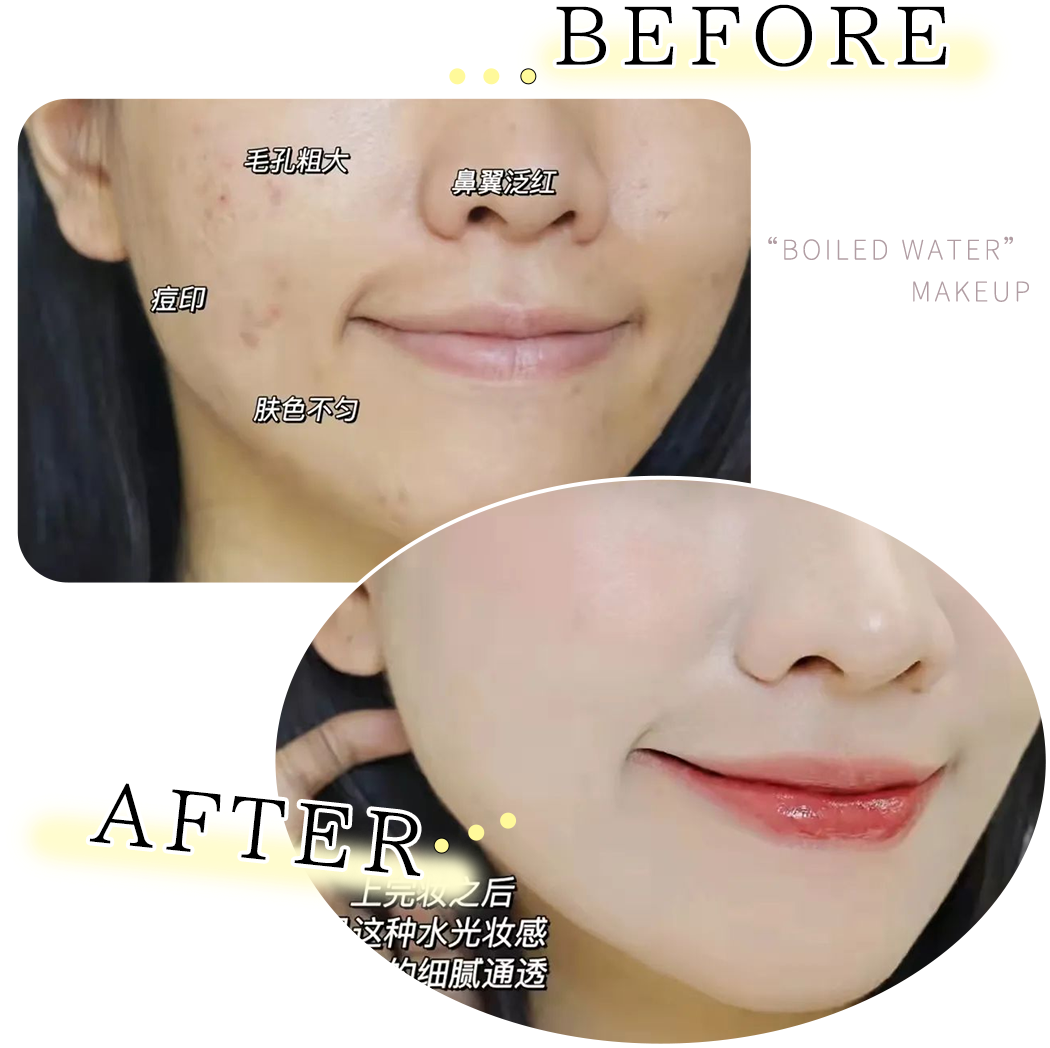 上完妆后的皮肤就像韩国女明星那种“陶瓷肌”裸感、细腻、有光泽别人看了会忍不住想:你皮肤天生就有这么好~
