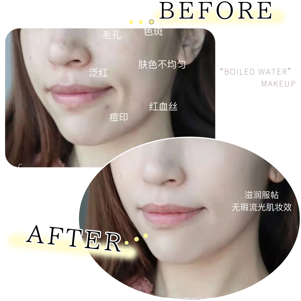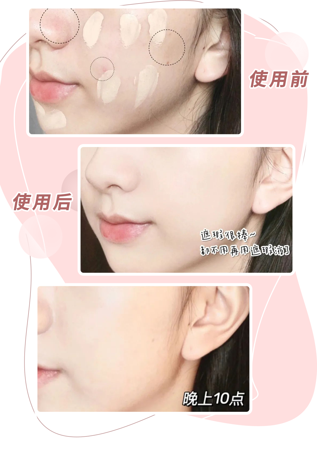 除了完美的遮瑕能力以外它还能提亮肤色!让暗沉的皮肤变得明亮鲜活妆感自然高级,一点都不假白自拍更是通透水嫩连P图软件都省了~
