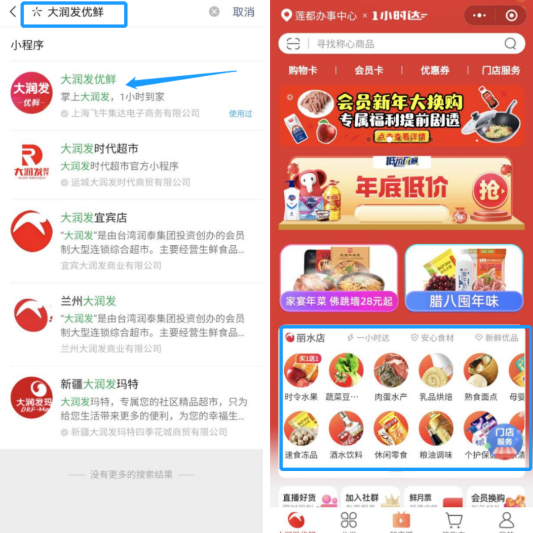 方法3:登录——搜索小程序“大润发优鲜”点击进入选购页面