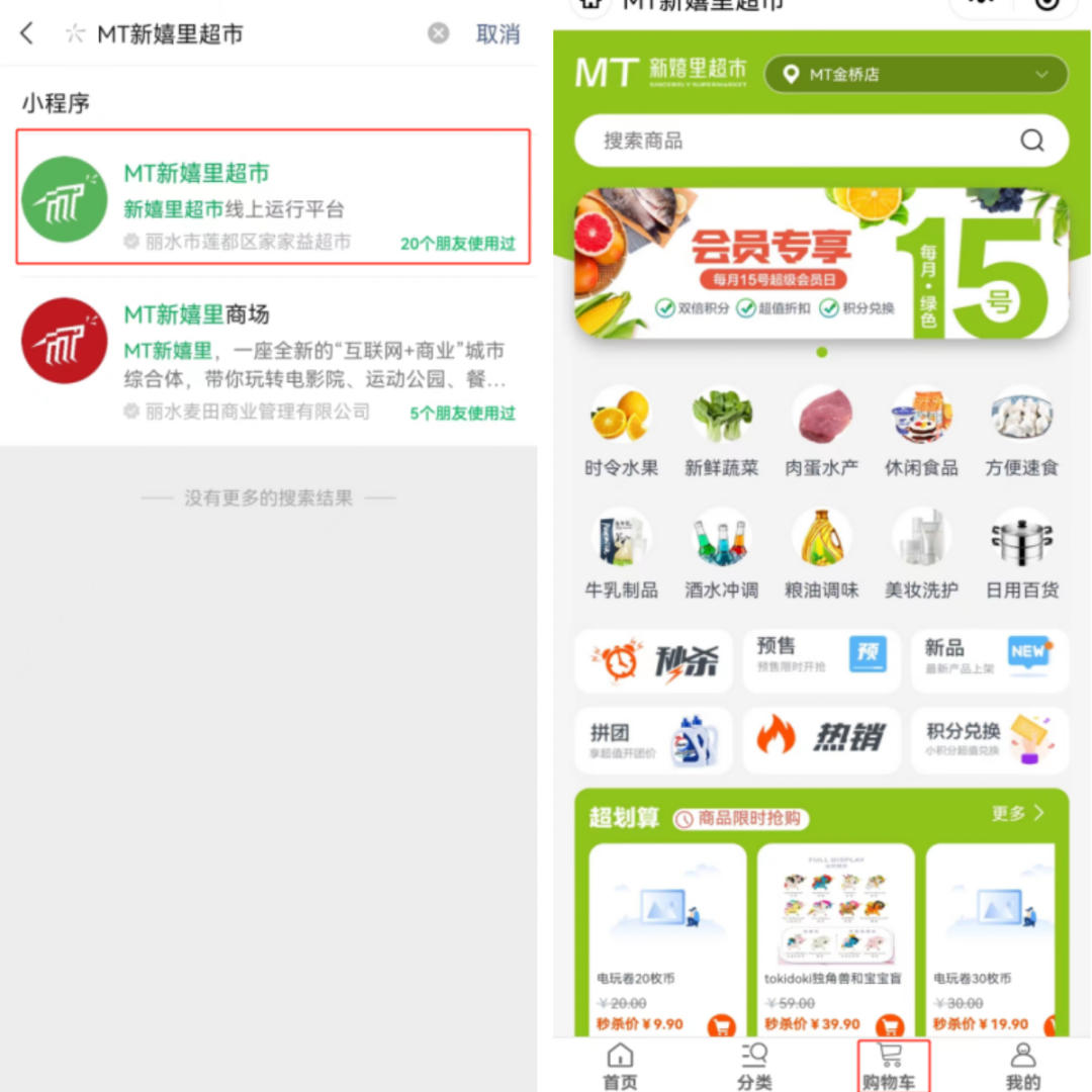 下单订购方式:登录—搜索小程序“MT新嬉里超市”点击进入选购页面。