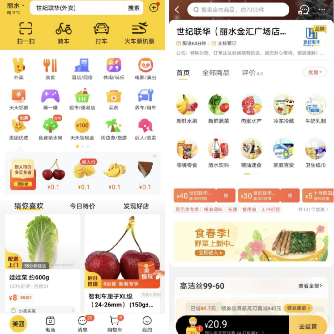 下单方式:登录美团、饿了么—搜索“世纪联华(丽水金汇广场店)”—点击进入选购页面