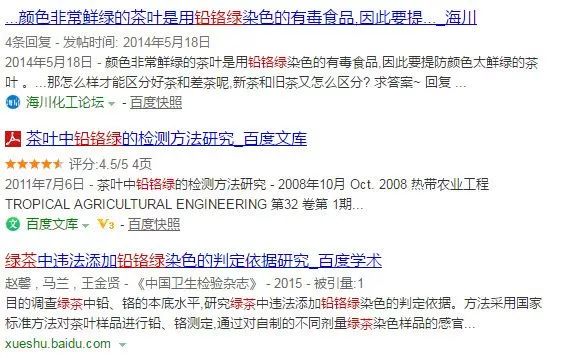 而这些色素里,最常见的就是铅铬绿,它是油漆的一种,可对人的中枢神经和器官造成极大损害,十分坑爹。鉴别:1.绿茶毫毛常为白色,染色绿茶毫毛则是绿色。2.用茶水打湿白色餐巾纸,若其中可见明显的色块,则很可能掺有化学染料。