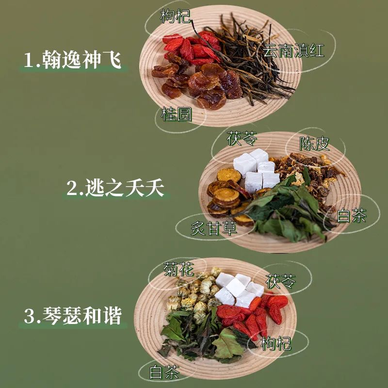 配方中运用的菊花有清肝明目泻肝火的作用,搭配枸杞子滋阴养肝养,二药相配适用于视物模糊,双眼干涩。对使用电脑,手机过度导致的视力模糊,双眼干涩等等有效缓解,再斟以茯苓起到一个清除肝胆湿热的作用,肝胆湿热所导致的症状主要包括情绪激动、易怒、焦虑。包括这个由于肝气不舒所导致的面色暗淡、黄褐斑,另外茯苓它还具有抗氧化,消除自由基的沉淀,在去除面部斑纹有着一定的作用,融合白茶引药效,可以让他们发挥的更加有效率和针对性。