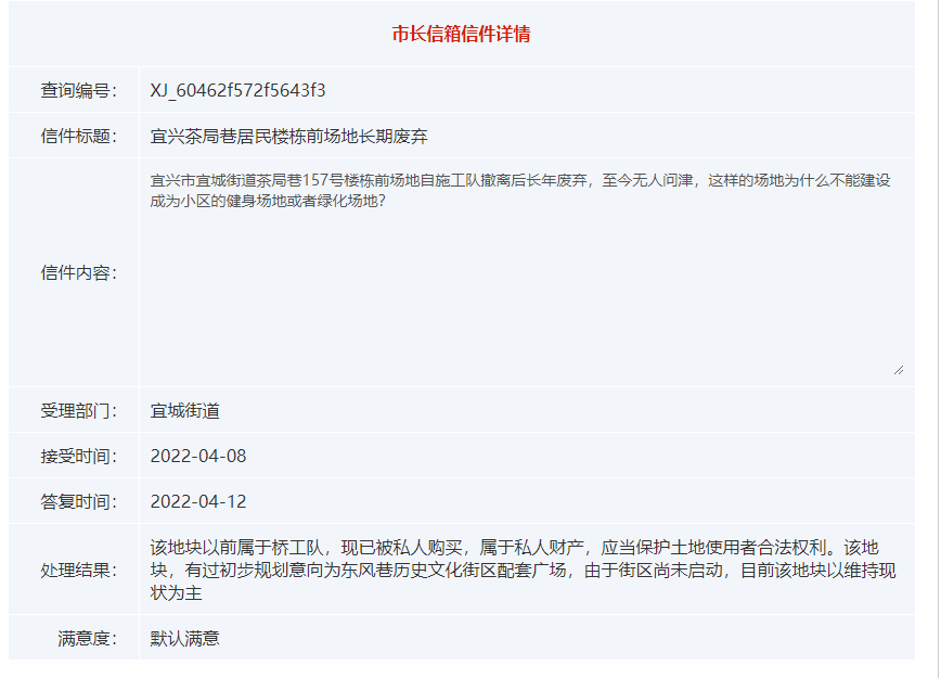 官方问答宜兴茶局巷居民楼栋前场地长期废弃