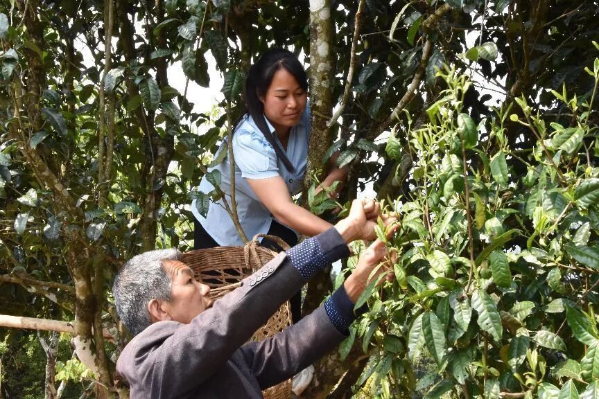 高原社区现有茶园面积832亩,有效管理面积653亩。上个世纪30年代种植了300余亩,1958年从芒棒封家引进并扩大种植近500亩。在以前,高原产出的茶叶虽然品质好,但是由于高原社区离集镇较远,没有专门的收购厂家,价格都是比较低廉,农民收入较少。自从引入公司后,茶叶主要采用公司+农户销售模式,农户采摘茶叶后直接交售到驻地高原社区的滕黎茶业公司,公司统一生产包装销售。公司收购茶叶后沿用传统制茶工艺,采用萎凋、手工杀青、揉捻、晾干和石磨压制等方式进行制作。以中高端普洱茶、红茶加工为生产线,通过网络直播等渠道进行销售,产品的百分之九十以上都是销往上海,广州,武汉等一线城市,随着知名度的逐年提高,近几年来销量每年都在逐步扩大。2021年,为当地群众带来40余万元收入。