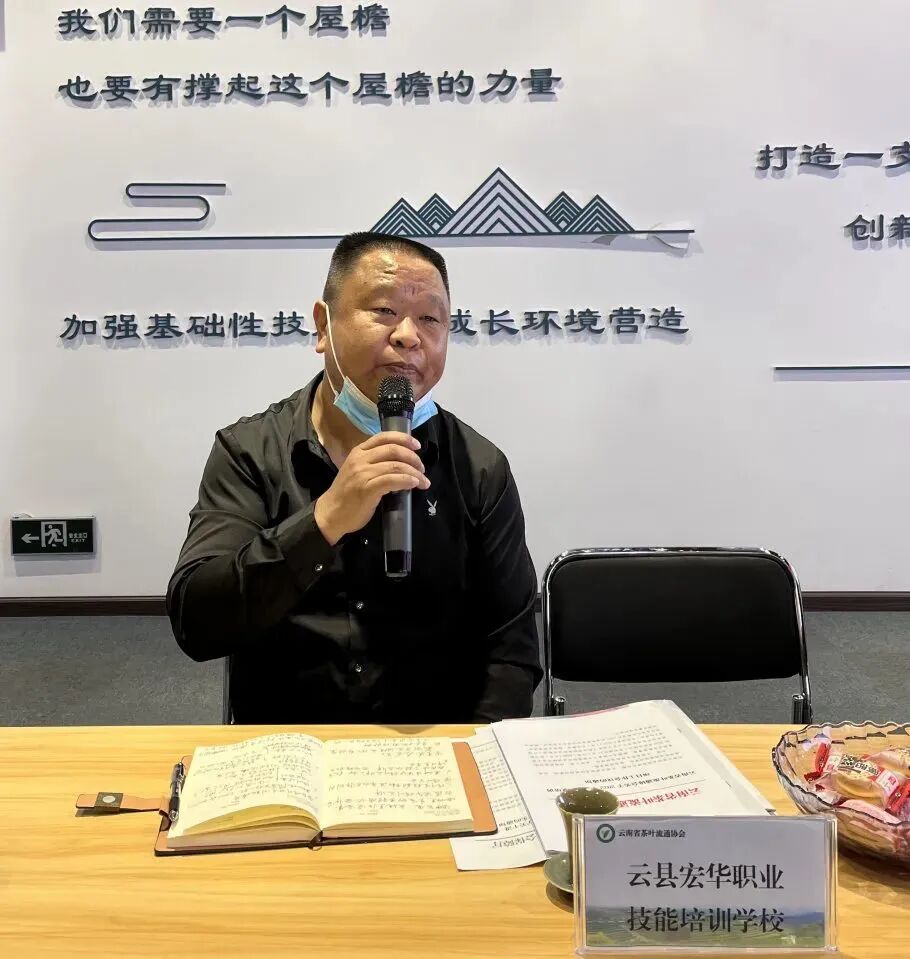 为进一步规范职业技能等级培训、认定工作,加强职业技能等级证书数据管理,根据《云南省人力资源和社会保障厅关于做好 2022 年职业培训工作的通知》(云人社通〔2022〕8 号)和中国就业培训技术指导中心关于印发《职业技能等级证书数据工作指南》的通知(中就培发〔2022〕1 号)文件要求,4月11日,云南省茶叶流通协会组织云南云茶职业技能培训学校、云南巨星职业技能培训学校、云县宏华职业技能培训学校等合作机构召开 2022 年省级职业培训项目工作会议。本次会议在我校召开。