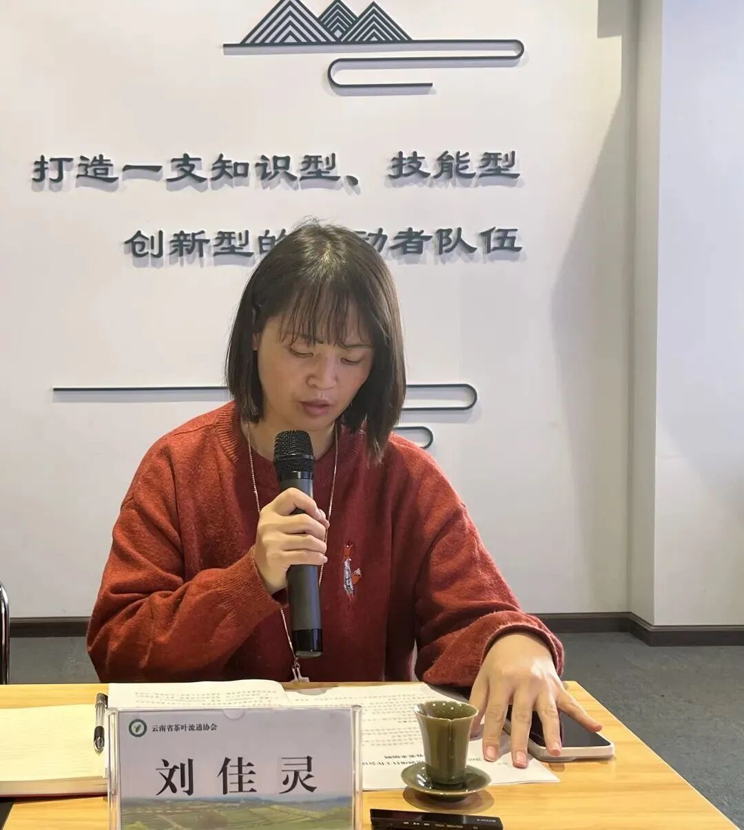 云南省茶叶流通协会职业技能认定中心副主任刘佳灵汇报了认定考试相关事宜,并根据中国就业培训技术指导中心的要求统一了认定需提交的材料。