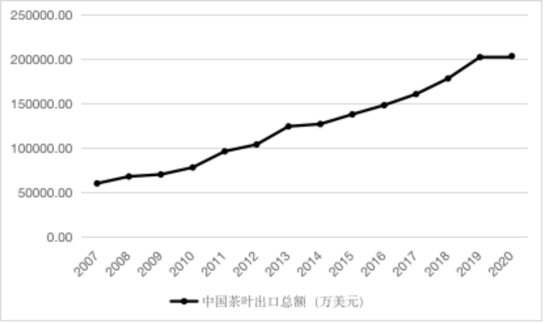 2000年10月,在中国与非洲的共同倡议下,中非合作论坛正式成立,双方提出建立“长期稳定、平等互利的新型伙伴关系”。2021中非合作论坛——减贫与发展会议成功举办,创新性地从中国和非洲的国别视角分享了减贫与乡村发展领域的政策与实践,这就为中非发展茶叶贸易、进一步优化中非茶叶贸易结构提供了重大战略机遇。亚洲和非洲是世界重要的茶叶生产地,其茶叶产量几乎占世界茶叶总产量的96%。其中,中国在茶叶生产上具有非常重要的地位,中国茶叶产量占世界茶叶总产量的45%。因此,茶叶贸易是中非贸易的重要组成部分。大力发展中非茶叶贸易对于中非经贸发展、中非减贫合作具有重大战略意义。2. 中非茶叶出口现状