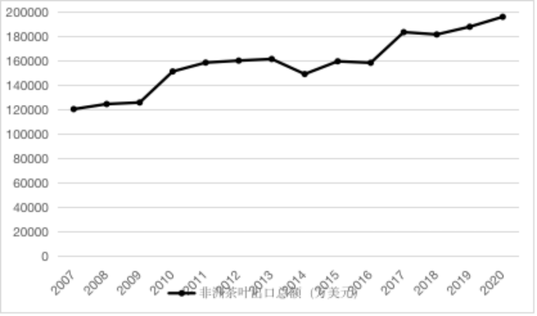 非洲的许多国家也是世界主要的茶叶生产国和出口国,非洲在国际茶叶市场上也占据了重要地位。图3为2007-2020年非洲茶叶出口总额。图 3 2007-2020年非洲茶叶出口总额