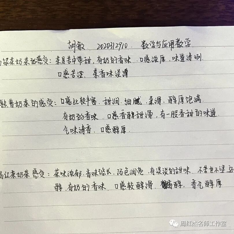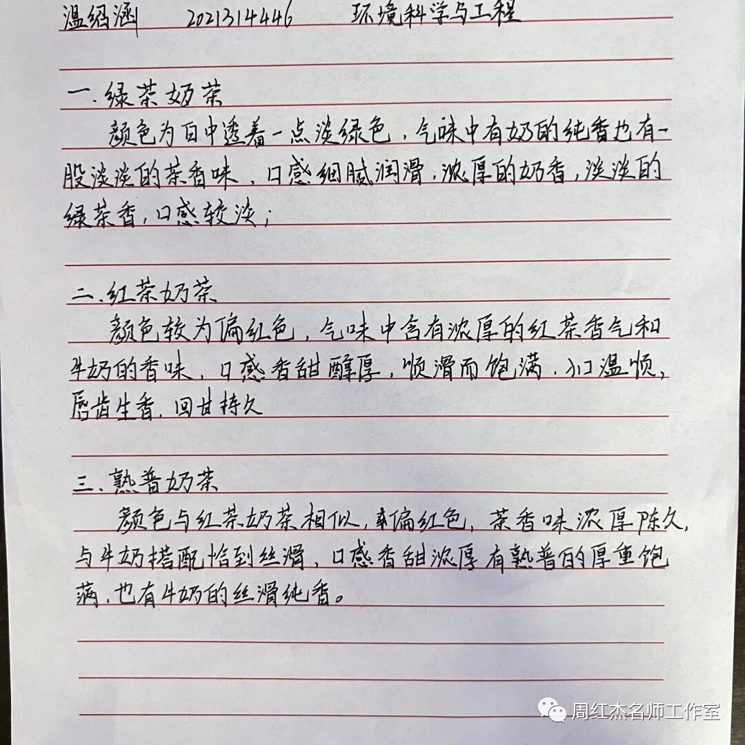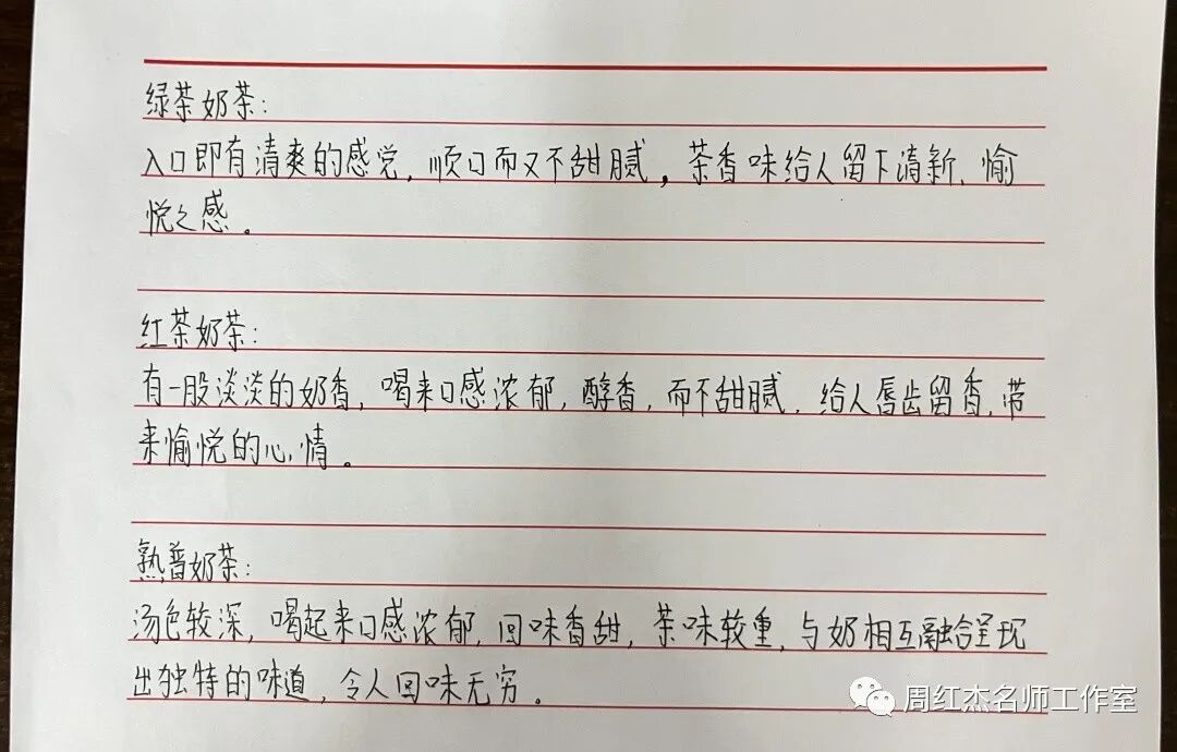 同学们品饮完三种奶茶之后纷纷写下了喝奶茶的感悟。