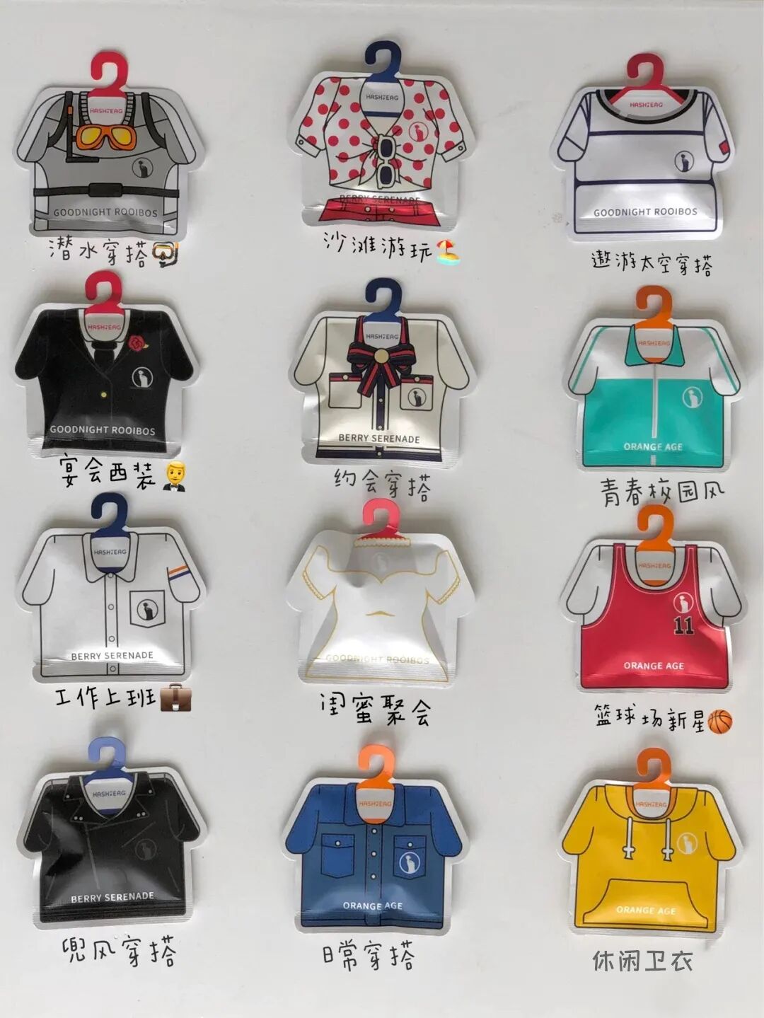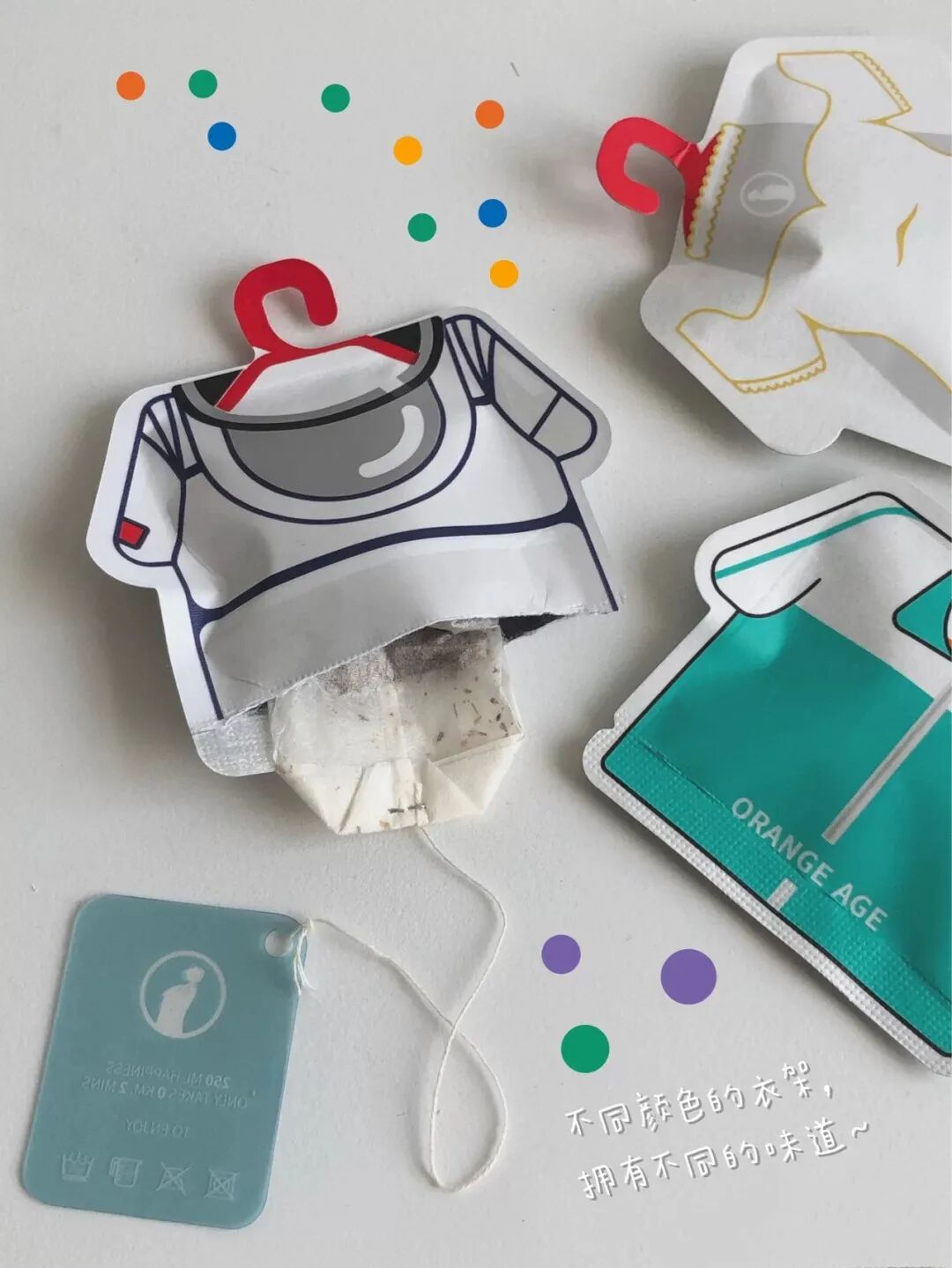 将包装做成衣柜的样式,里面的一件件衣服代表了不同的味道,不同的心情。这么好看的包装属实让人不舍得喝了。