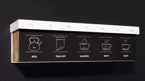 看上去是一列普通的日历,但只要翻个面,就可以看到背后的“茶包使用说明”和正常日历一样,这款“日历茶包”可以每天撕下一张。而且一年365天,每天茶包的味道都是不同的,天天都有新体验。