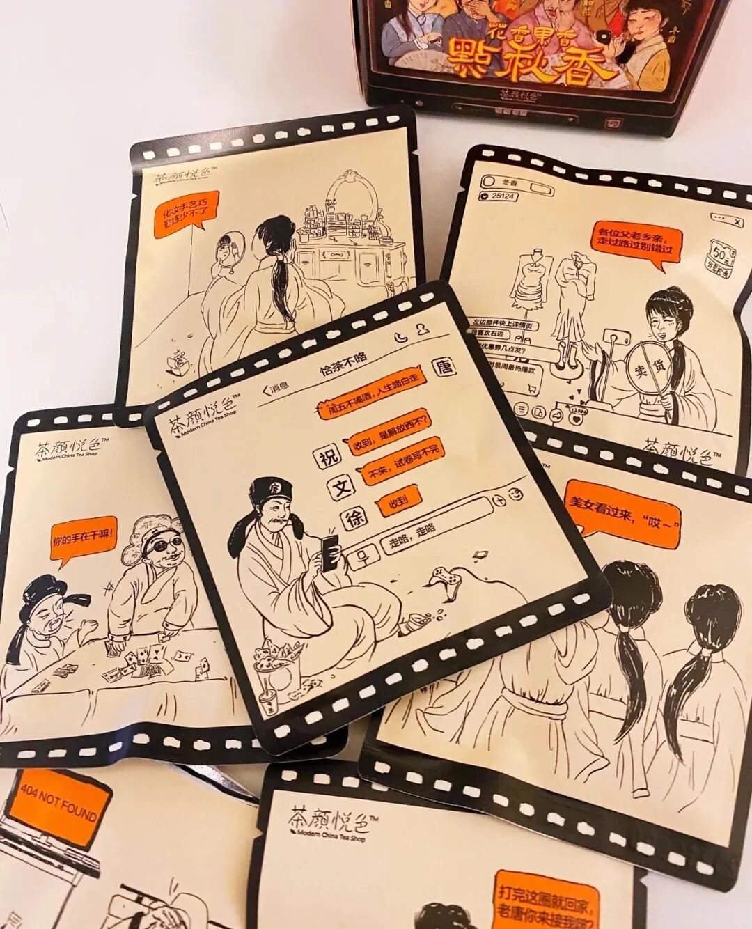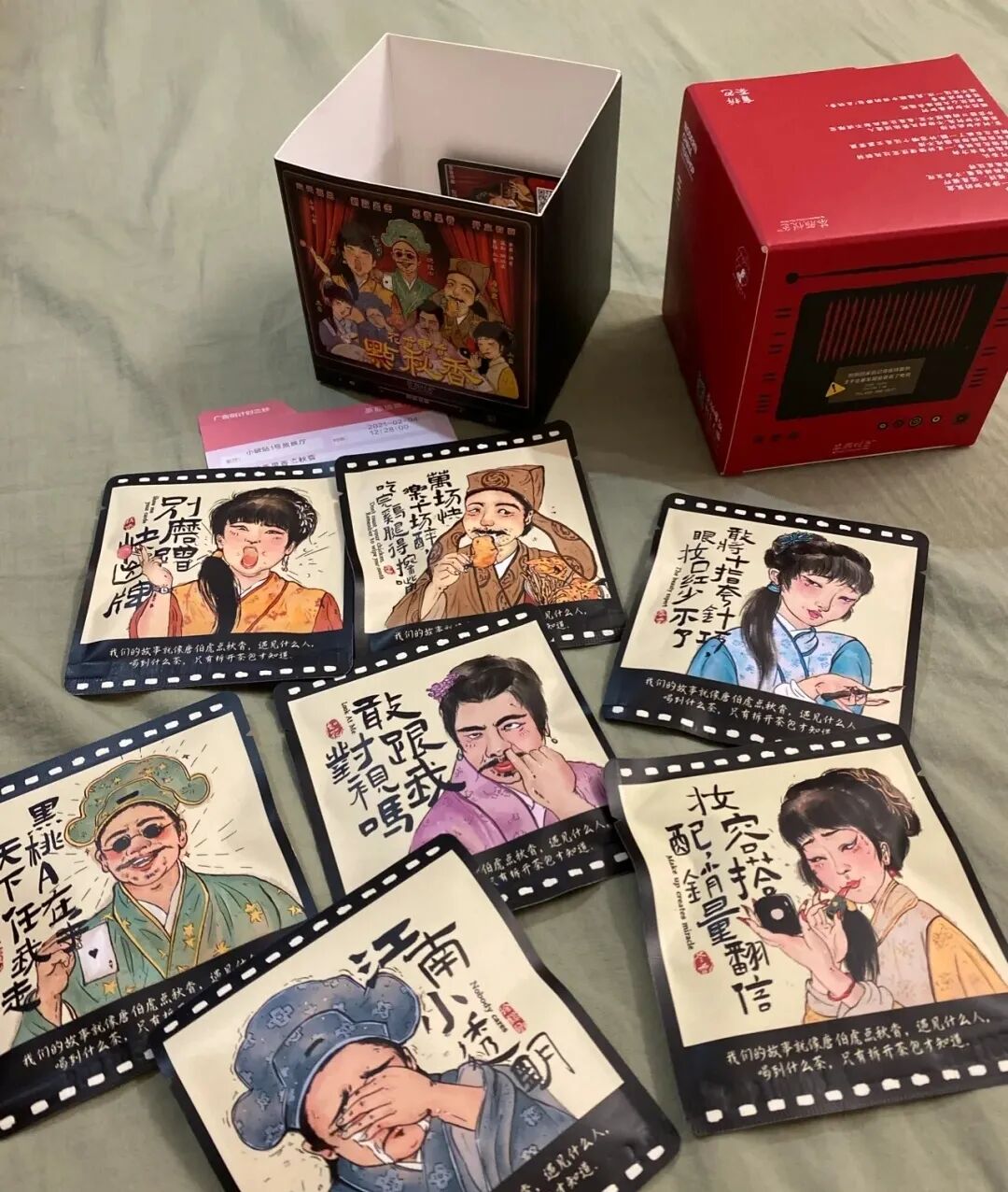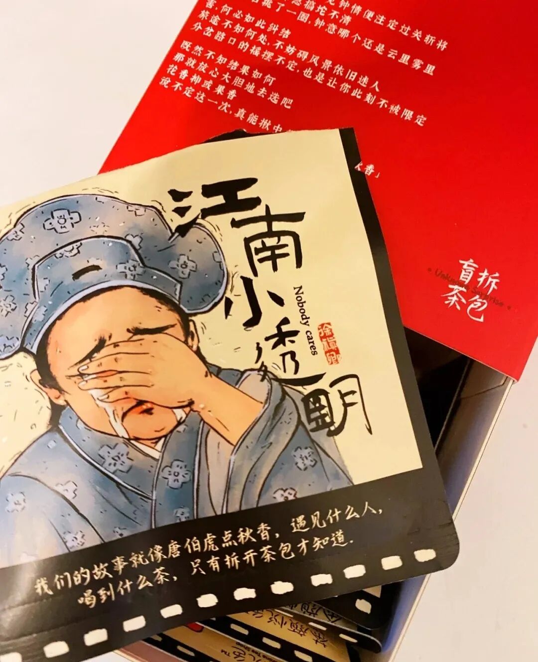 茶颜悦色推出的盲盒茶包,唐伯虎点秋香的主题,盲盒形式让喝茶也变得富有神秘感。