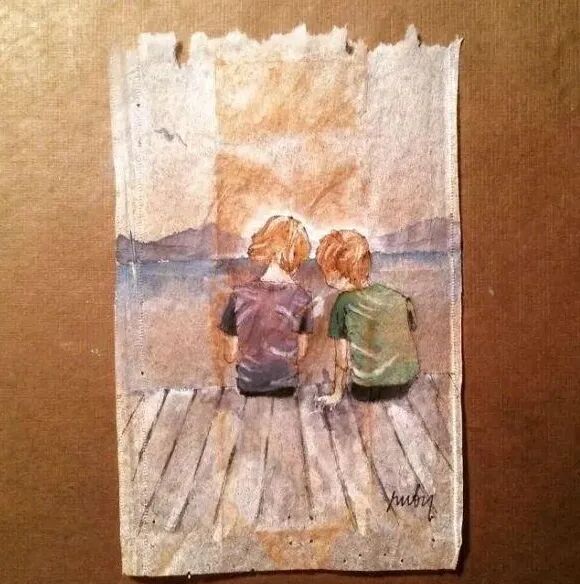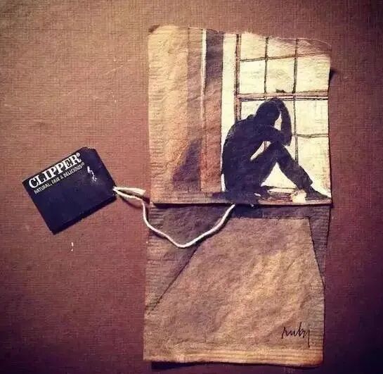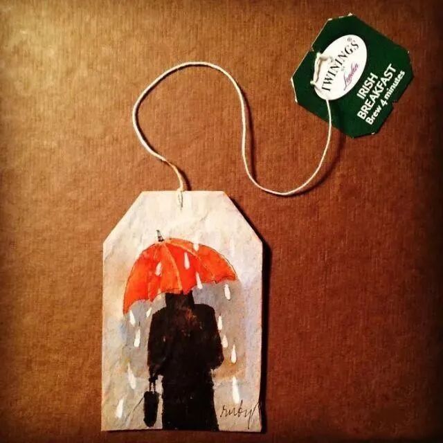 来自于菲律宾艺术家的手绘茶包。他将废弃的茶包拆开、晾干,用画笔记录下自己每天的所见所闻。