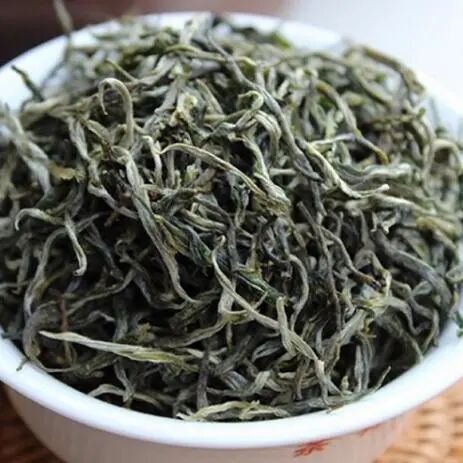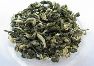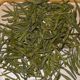用适合作绿茶的茶树品种的鲜叶作为原料(单芽、一芽一叶或一芽二叶),经高温杀青杀灭各种氧化酶,以保持茶叶的绿色,然后经过揉捻、干燥而成。