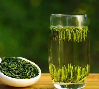 (3)下投法——将茶叶直接放入玻璃杯中,后注入热水至七分满即可。适合选用外形细长,条索较重且粗大叶的茶。如太平猴魁、六安瓜片、滇绿等。