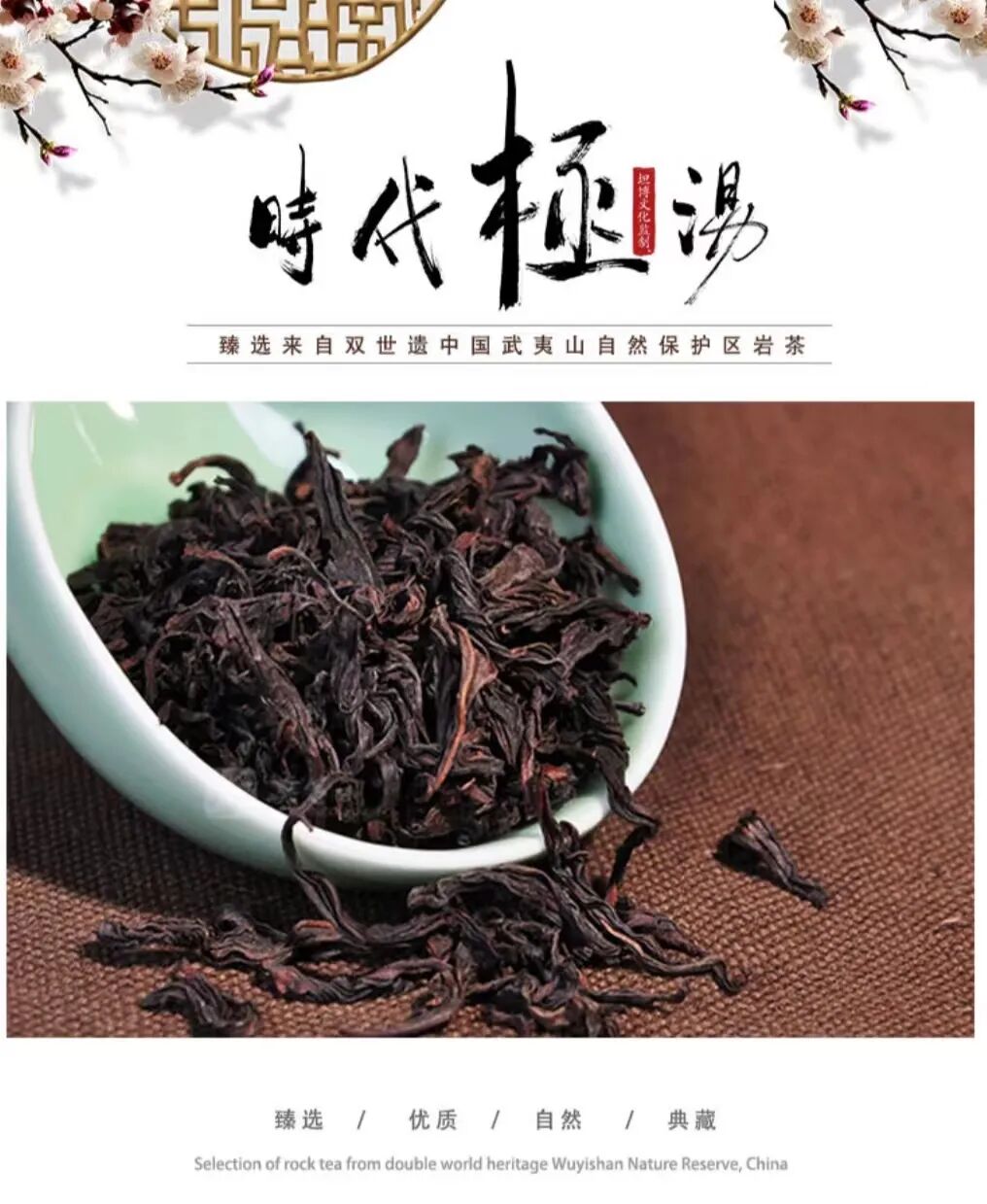 臻选来自双世遗中国武夷山自然保护区岩茶,武夷岩茶是我国传统名茶,是有特殊岩韵味(岩骨花香)的乌龙茶,主要产自于福建省武夷山一带,做法是介于绿茶和红茶之间的乌龙茶,因为口感上既有绿茶的清香,也有红茶的甘醇,堪称是中国乌龙茶中的极品茶。