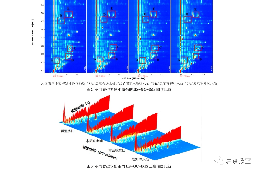 更厉害的是,孙威江老师的团队为揭示决定老枞水仙茶“丛味”的关键香气成分和关键性生化成分物质,在熹茗公司的支持下,应用气相-离子迁移谱技术(GC-IMS)、高效液相色谱法(HPLC)对不同香型老枞水仙的挥发性物质、主要理化成分进行特征分析。共鉴定出38 种挥发性物质。