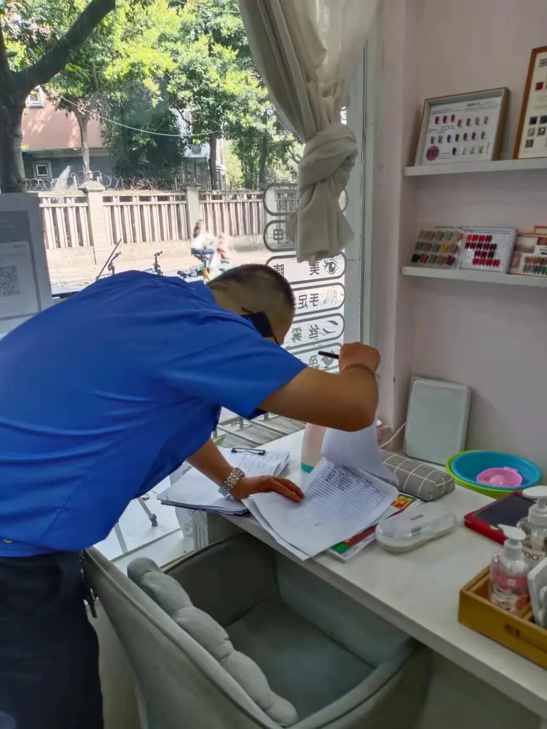 摸排完成后,执法中队的任务才算刚刚开始。队员们不仅要对门店进行日常管控、反复排查,对于不会设置场所码、应急预案的商铺,还需帮商家们设置好。