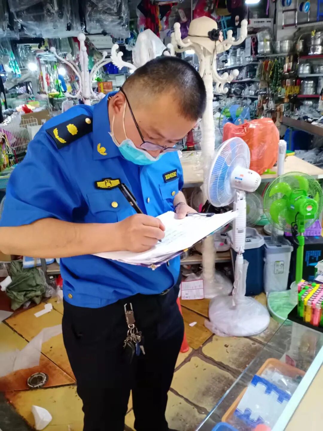 为了更好地实施疫情管控,执法中队创新设置了现场巡查记录单。进出人员扫码、店铺日常消杀、信息台账记录等全部记录在内。