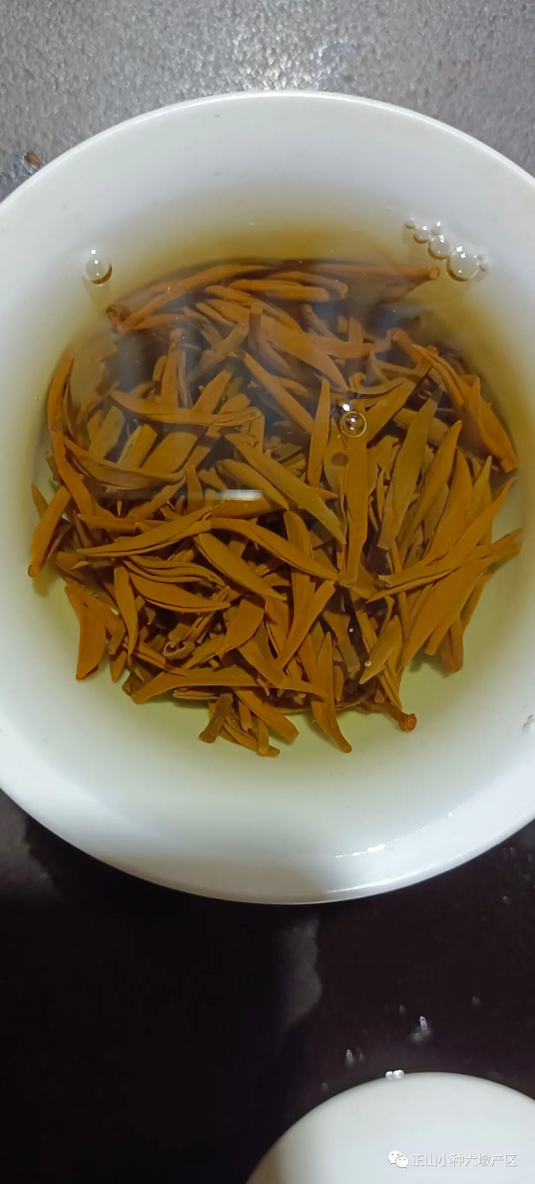 这里有一个直观的感觉就是正山金骏眉不会全黄,黑灰黄相间。