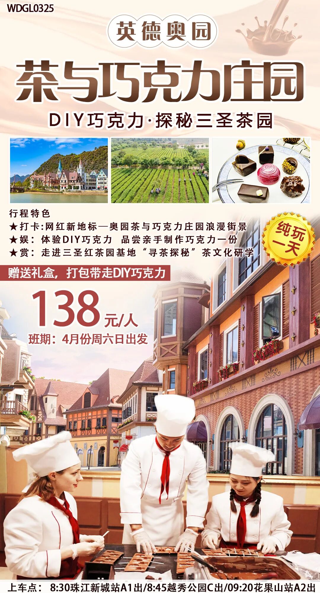 行程: 广州 →英德茶与巧克力庄园(DIY巧克力)→午餐自理→三圣红茶叶基地→返程