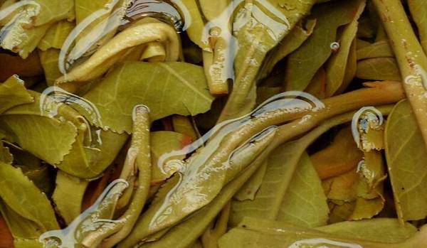 灼伤的叶底,常伴随着过重的杂味或者火味,完全失去了后期转化能力。