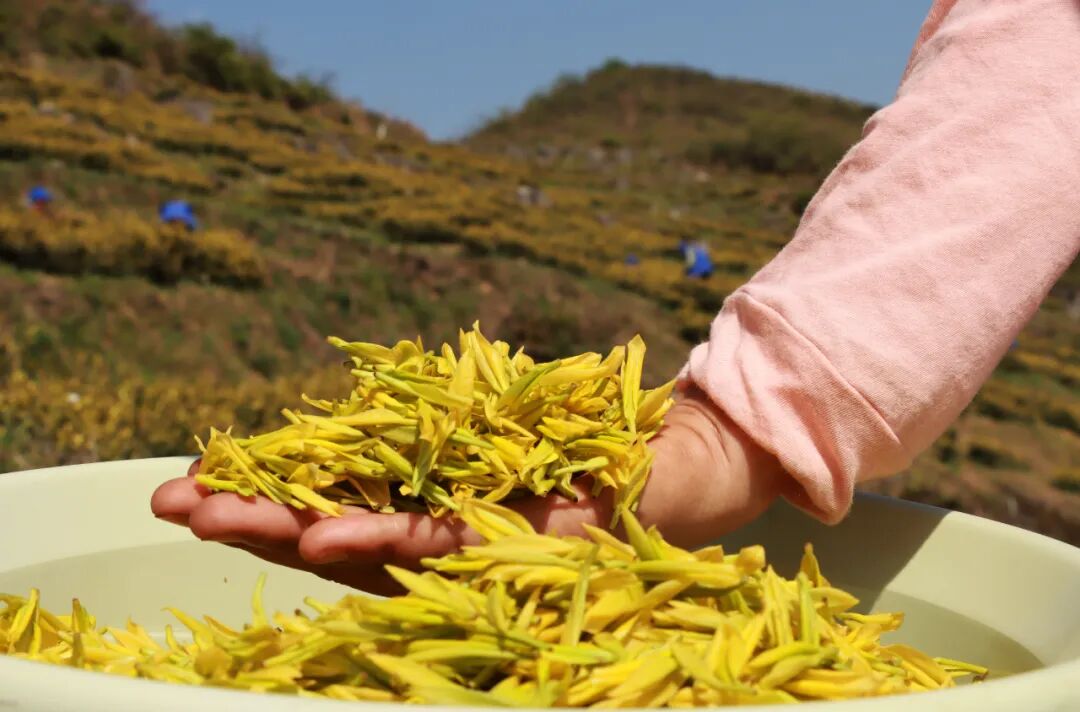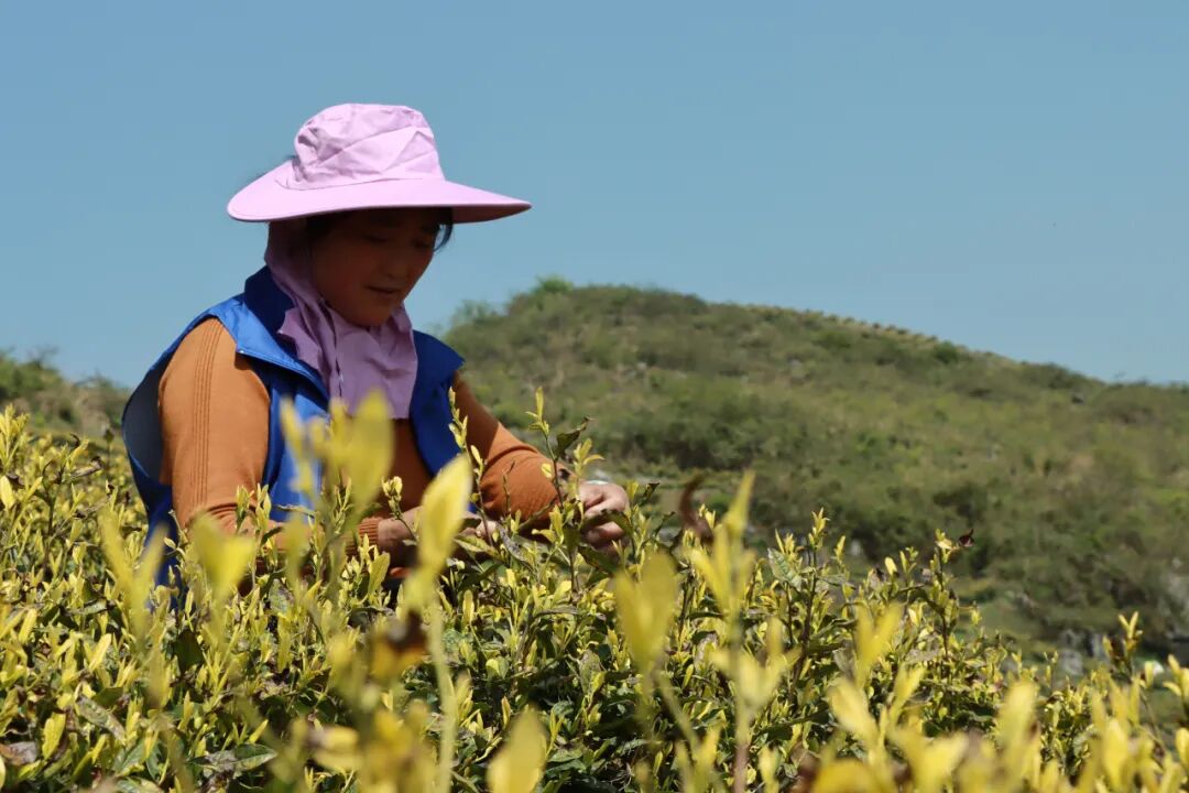 德江县泉口镇的水塘村与遵义市务川县交界,平均海拔在1200米以上,每年有近3个月的时间处于冰封状态,是曾经出名的老少边穷地带。近年来,在村支部的带领下发展黄金芽1000亩,今年有700亩进入采摘季。由于海拔高,这两天迎来了第一波“黄金芽”采摘,预计今年能采茶青10000斤,给当地群众带来近20万元的务工收入。