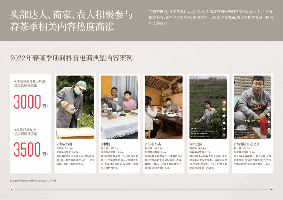 我们希望通过本篇报告,能为茶行业商家、产业带、创作者等主要生态参与者和消费者扼要呈现抖音茶行业的发展情况,提供部分参考的同时,也见证并记录抖音电商在促进我国茶行业蓬勃发展中的跬步。
