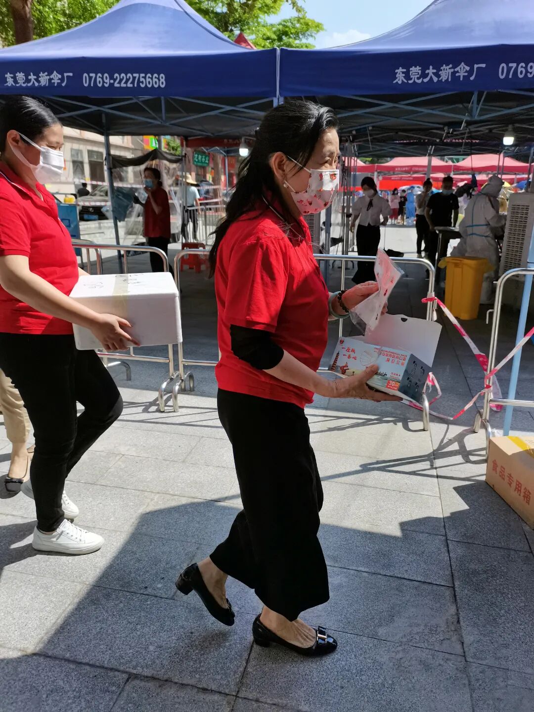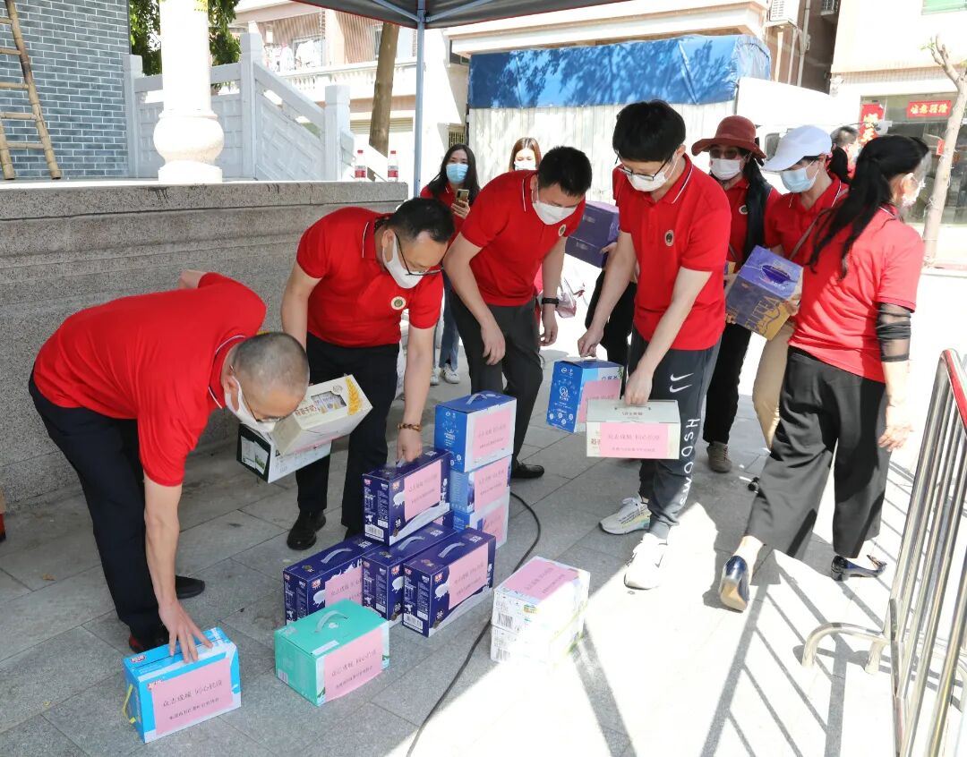 4月8日,万江石美社区开展全员核酸检测,协会组织会员代表看望慰问奋战在抗疫一线的工作人员。