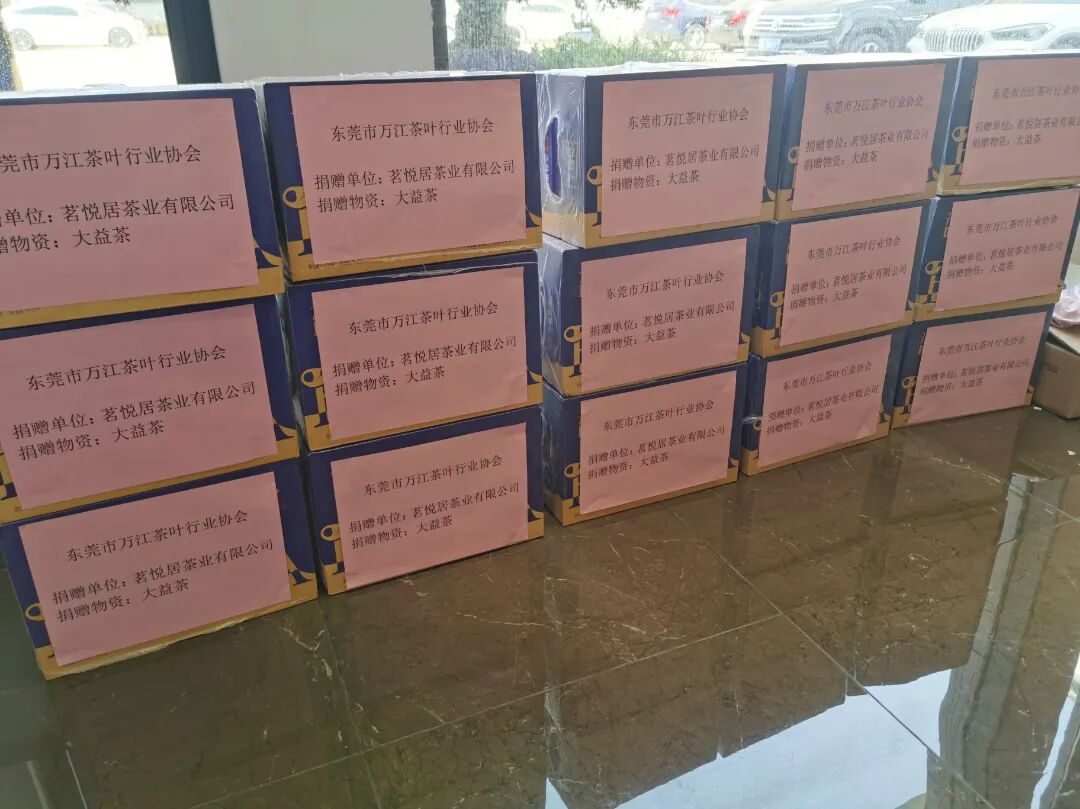 本次活动协会采购了牛奶、饮料和面包一批,常务副会长单位东莞市茗悦居茶业有限公司捐赠大益益原素15箱(价值2880元),合计5000余元。