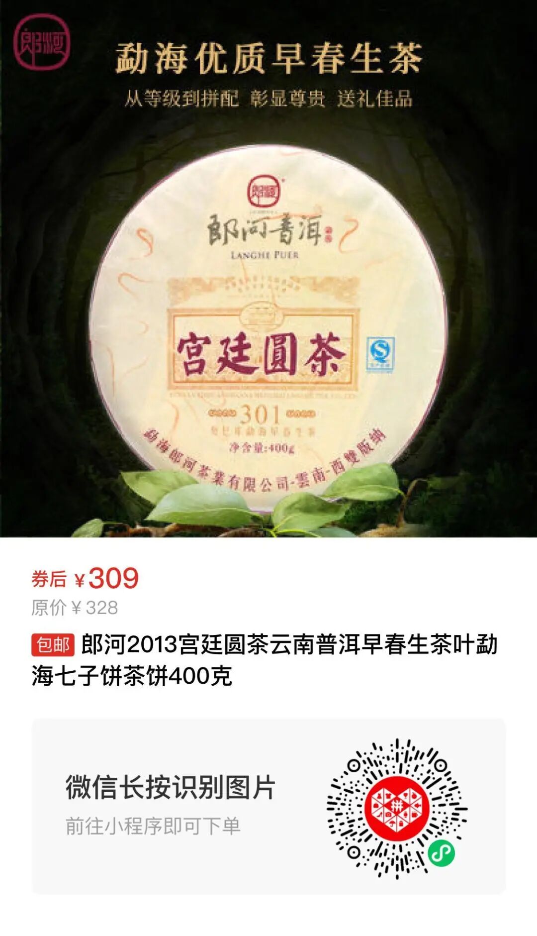 郎河2013宫廷圆茶云南普洱早春生茶叶勐海七子饼茶饼400克