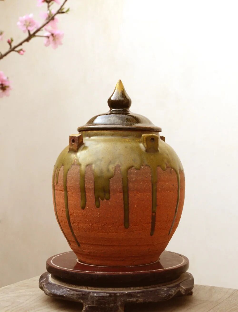 茶叶末釉,是我国古代铁结晶釉中重要的品种之一,属高温黄釉,经高温还原焰烧成。釉面呈失透状,釉色黄绿掺杂好似茶叶细末,绿者称茶,黄者称末,因此被称为茶叶末釉。颜色古朴清丽,极为雅致,雍正、乾隆两朝最为所重,成为宫廷秘釉,仅供皇室珍赏。茶叶末釉产生的朝代可以追溯到唐朝。陕西耀州窑遗址中曾出土了茶叶末釉瓷器,釉色有黄绿、褐绿等。唐宋时期,北方地区一些烧造黑釉的窑场也有烧造出茶叶末釉。明代御器厂所产的茶叶末釉,釉色黄润,带黑色或者黑褐色斑点,由于似鳝鱼皮,因此称作“鳝鱼黄”。清代景德镇的烧制非常成功,使茶叶末釉一跃成为非常名贵的色釉品种,雍正时期的茶叶末釉黄色居多,乾隆时期的茶叶末釉绿色偏多,也被叫做“蟹甲青”,这个时期的茶叶末釉瓷器,在青褐色中还散布着不规则的黄色小黑点或小丝纹,色调有深浅之分,浅者略显黄色,足部釉与露胎相接处有刮削时无意留下的一圈像锯齿样边缘线。