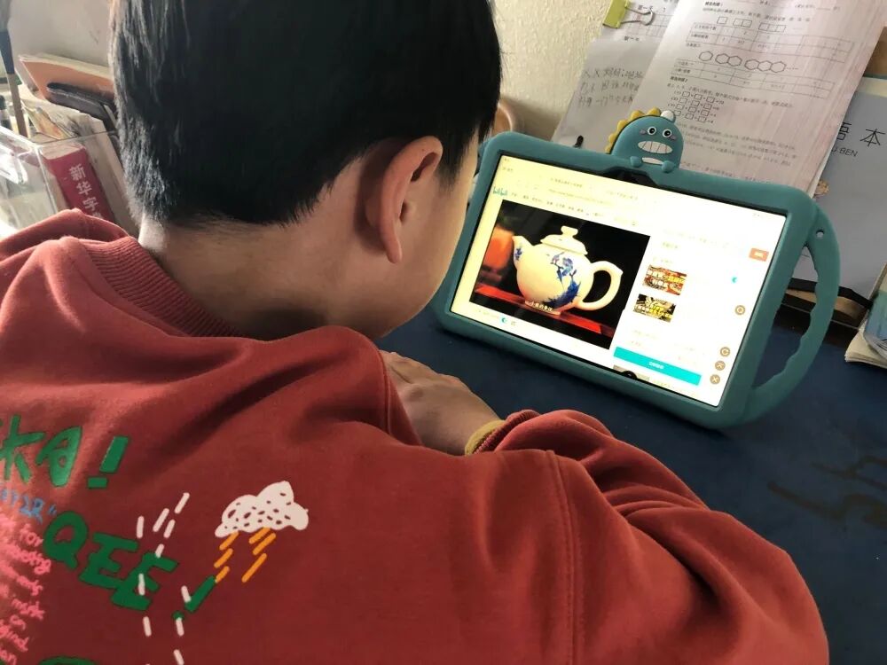 围绕这个主题,我们带领学生开展了项目式研究性学习,引导学生自主探究,用多种方式搜集资料、了解茶器。学生们走出校园,走进图书馆,探访茶园茶馆,询问长辈亲友,查阅、参观、把玩、感受,和茶器们进行亲密接触。然后运用网络查找相关资料,进一步了解茶器的起源用途、种类材质、中西差异、传播推广等知识,并尝试用英语来表达茶器、描述茶器。