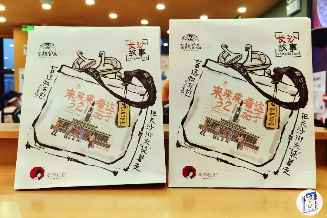 城市的标签,长沙是一座游客众多的网红城市,扎根于长沙的茶颜悦色,通过脑洞大开的奇思妙想,将传统文化与长沙的城市文化深度融合,以周边产品、茶包甚至纸杯为载体,既带动了品牌周边及线上产品的销量,顺便也为长沙及湖南做了一波「硬推广」。