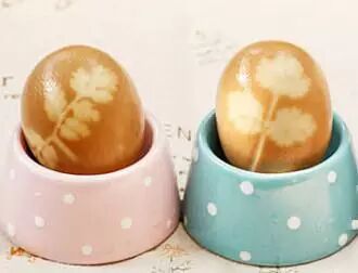 1. 鸡蛋洗净,剥皮;香菜叶子洗净;医用纱布热水煮一会消毒剪成比蛋大一圈的块备用;想菜叶放在蛋上,用纱布包住,裹紧,用棉线扎紧。