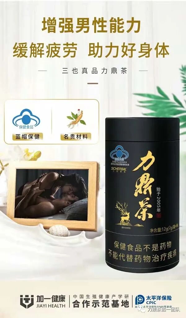 质量不好的产品还不如不用,时间和金钱浪费了不说,最重要的是伤害身体!用在男根上的产品,专业性,安全性必须得到保证,力鼎茶市场风靡15年,经得住时间考验,拥有历史传承,是获得市场认可的明星产品!三也力鼎茶就是这么一款值得男性信任的产品,它的主要成分是马鹿茸,淫羊藿,人参,枸杞,绿茶,刺五加,牛磺酸等。