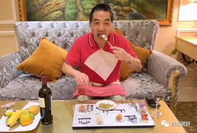 先来看看召忠老师表演的“吃榨菜炫富”版本,是配着红酒一起来的,餐巾和刀叉什么的都非常齐全,看起来就非常高端大气上档次!